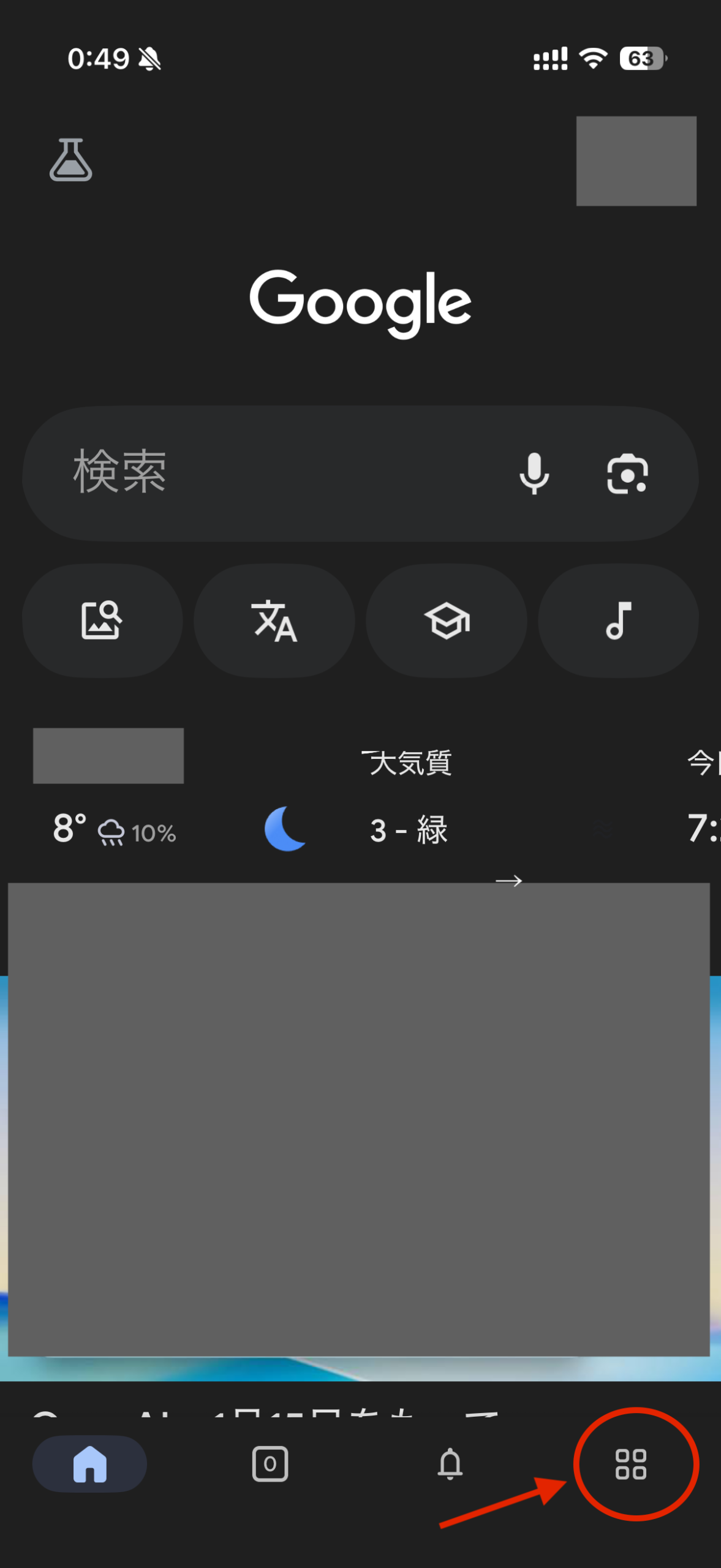 Googleアプリを開いて、右下の◻︎が4つのアイコンをタッチ→Geminiをタッチするだけで使えます。